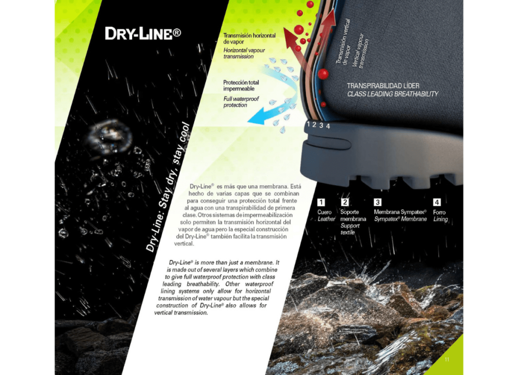 - FORRO: Sistema DRY-LINE XTP, con PRIMALOFT para garantizar una mejor impermeabilidad, transpiración y temperatura del pie.